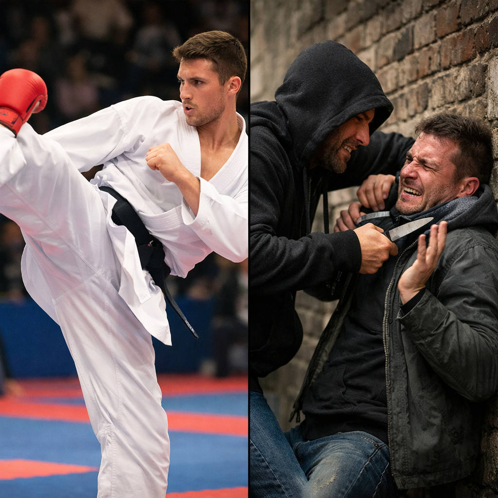 Because those calculations have no good answers. You don't know how big he is. You don't know if he's on something that shuts pain completely off. You don't know if he's alone or has backup around the corner. And while your brain is spinning its wheels trying to size up an unknown opponent… He's already moving.